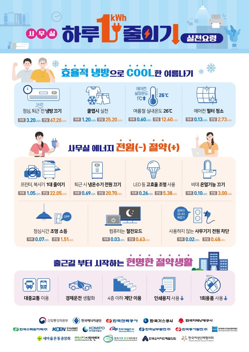 - 에너지 공단 : 홍보자료(하루 1kWh 줄이기, 냉방설비 운전, 관리 요령, 실시간 전기요금 확인 가이드 등) 정부 지원 사업 안내 등