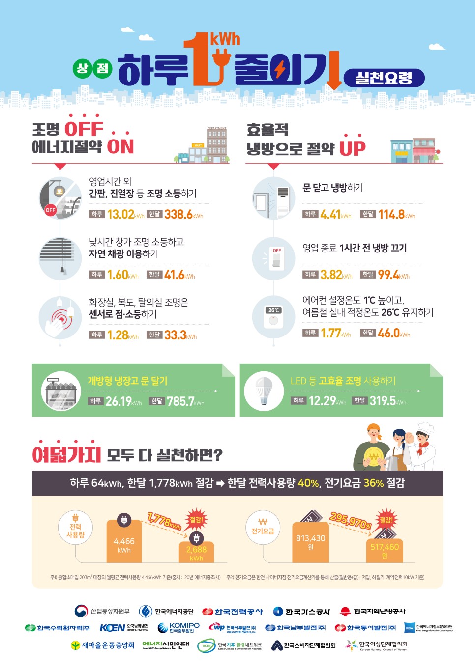* 하루 1kWh 줄이기 실천요령(가정, 상점, 사무실)