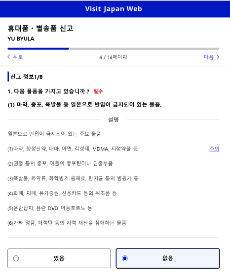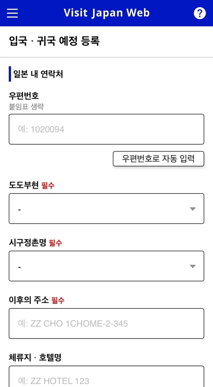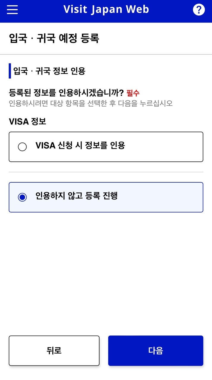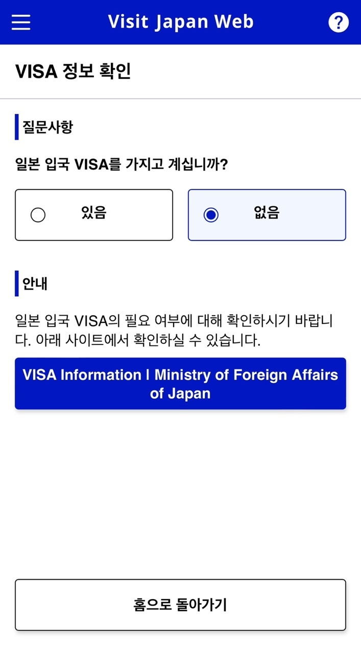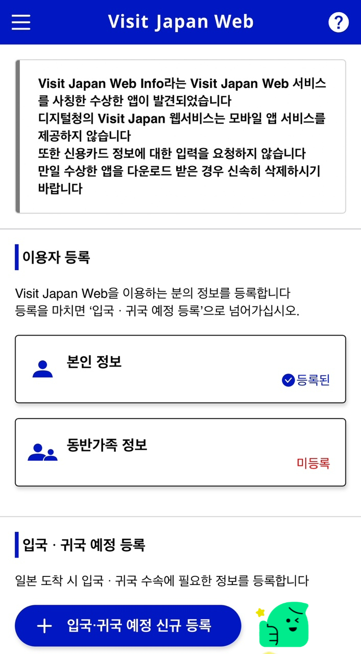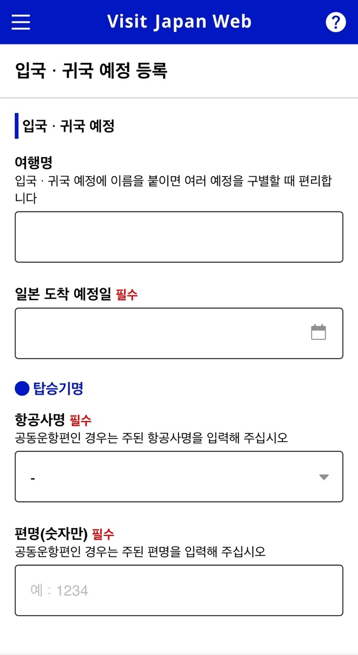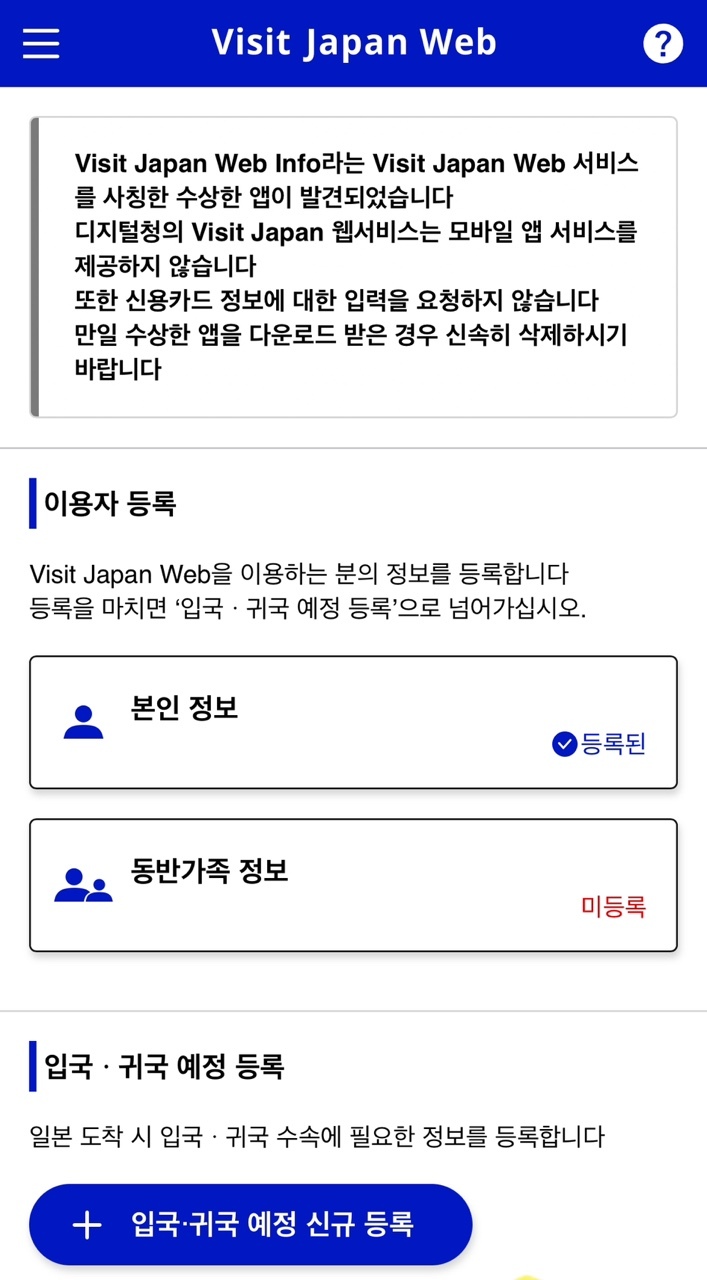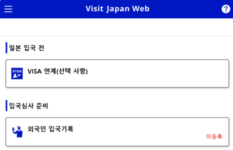 비지트 재팬 웹 새로운 입국 귀국 예정 등록
