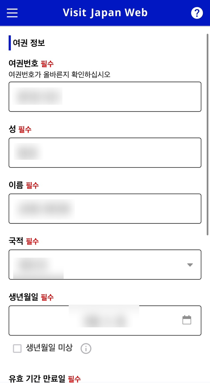 여권번호, 성, 이름, 국적, 생년월일은 한 번 더 확인 하시는게 좋아요.
