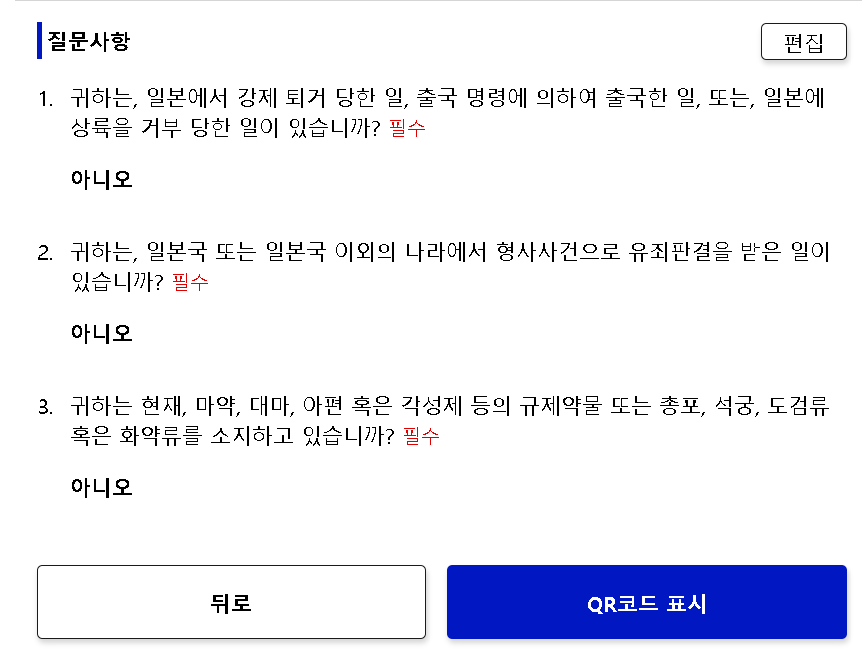 입국심사 QR코드가 확인됩니다. 캡쳐해서 이미지로 저장해 두면 편리합니다.