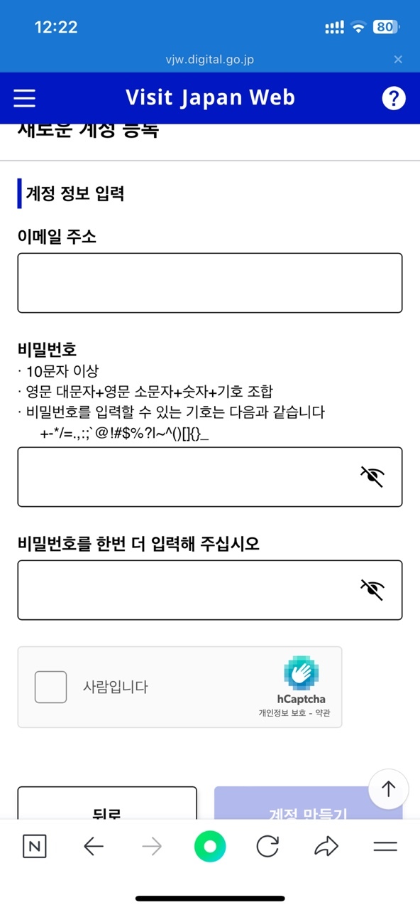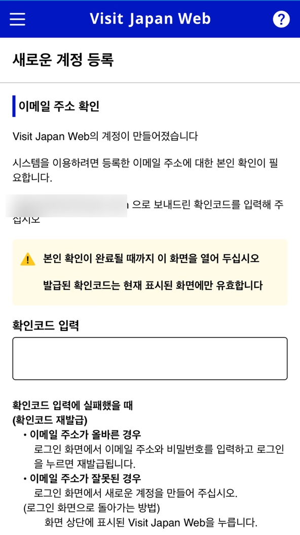 비지트 재팬 웹 신규 계정을 만들기 위해서는 이메일 확인이 필요합니다.