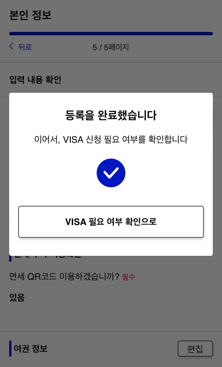 여권 등록까지 완료가 되면 비자 신청 필요 여부를 확인합니다.