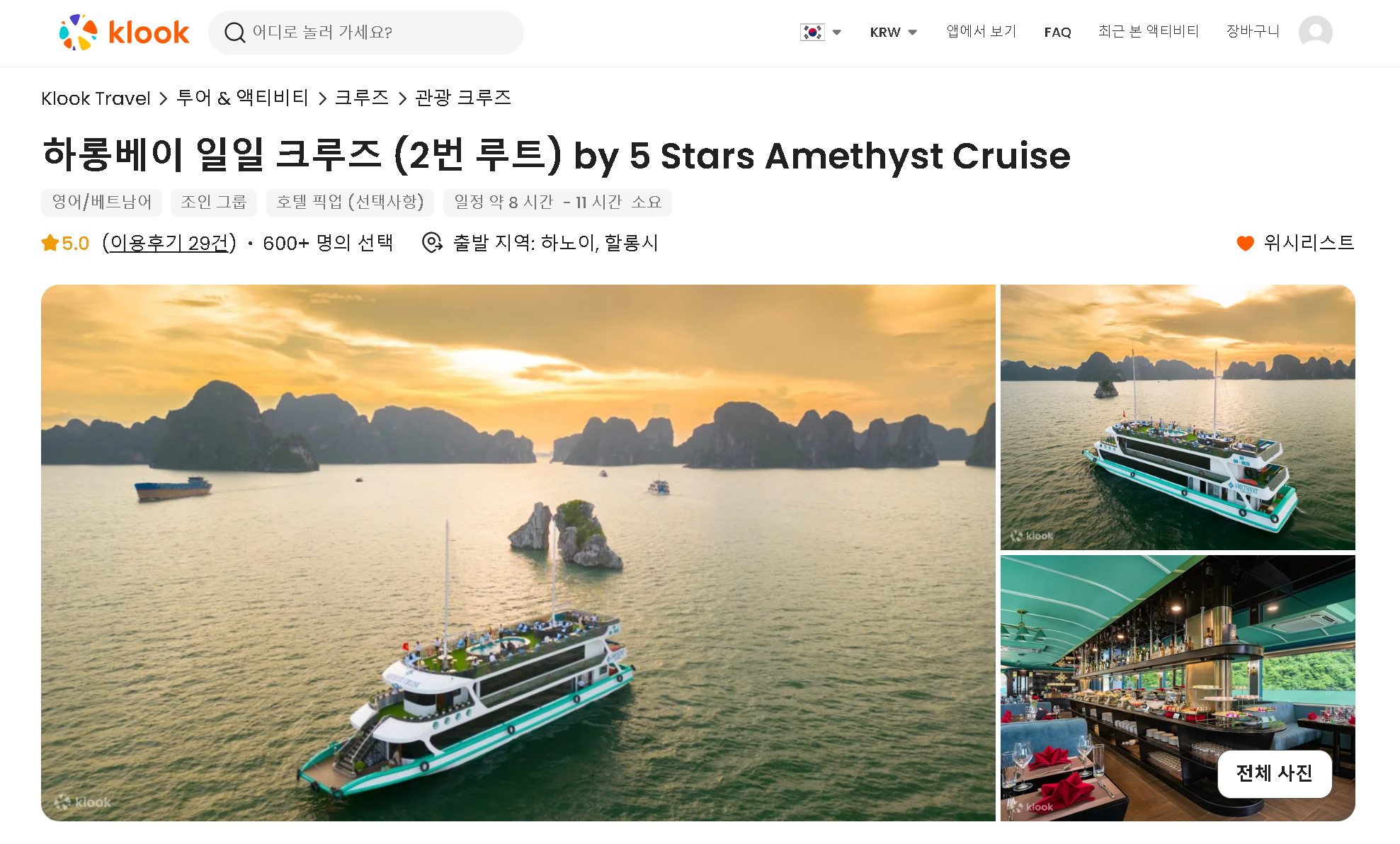 클룩에 있는 많은 일일 크루즈 상품들 중에 본 상품을 선택하게 된 이유는