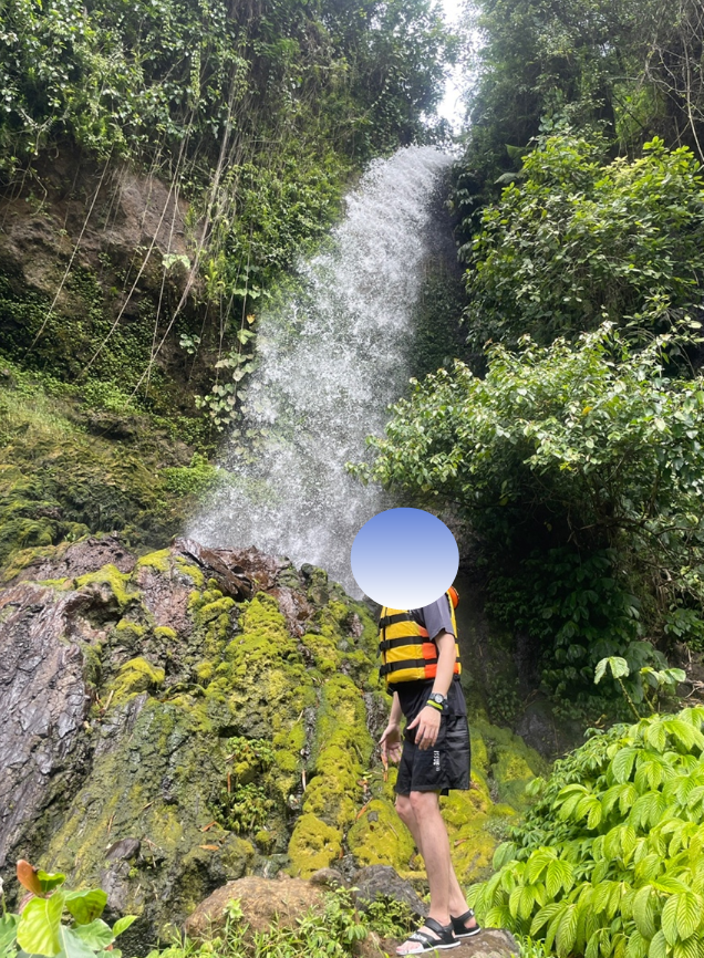 30분 정도 급류도 타고, 걷기도 했어요. 타고나니 폭포가 나와서 사진 촬영을 하는 쉬는 시간을 제공했어요. 음료수와 간식도 먹었습니다. (개인 사비)